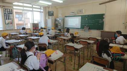 子どもたちは、少し緊張した表情の中に、ほっとした感じでの登校。