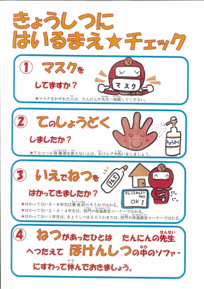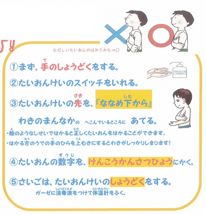 そのひは がっこうへ いくまえに おねつを はかりましょう