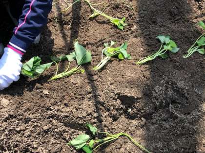 学しゅうえんに、あたらしいなえをうえました。なんのなえか、わかるかな?