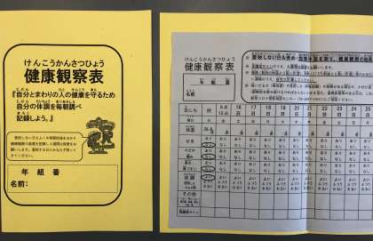 21日(木)は、2かい目のとうこう日です。きょうしつのいり口で、「けんこうかんさつひょう」を先生に見せます。だいしにきちんとはって、すぐ出せるようにして、もってきましょう!