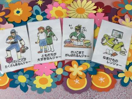 また、ほけんだよりのレンジャーさがしはできたかな?1まい目のうらや、2まい目にも書くところがあります。ぜんぶしあげてもってきましょう。