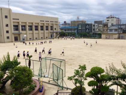 グラウンド風景です。学校に子どもたちがいると、うれしくて、楽しいです。