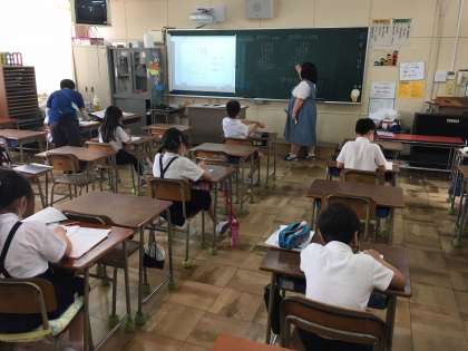 4年生の算数科の授業を、見学しました。3けた×3けたのかけ算を学びました。