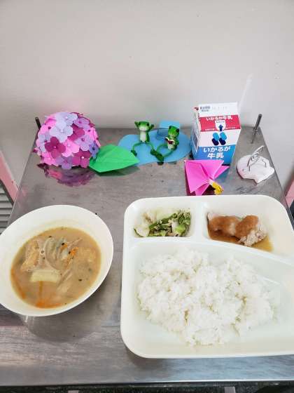 鶏肉のおろしじょうゆかけ、みそ汁、野菜いため