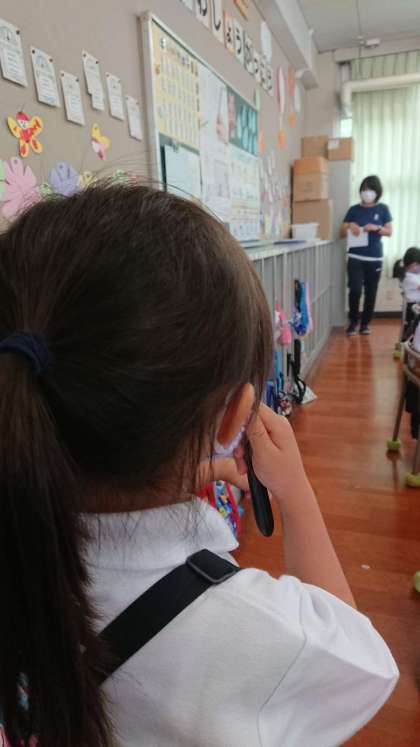今回は、密をさけるために、保健室ではなく、教室での実施。