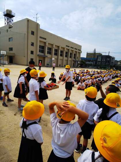 2年生から6年生が協力して作ったメダルをプレゼントしたり、花道を作ったりとみんなであたたかく迎えることができました。