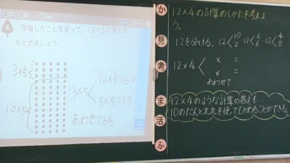 学習課題は「12×4の計算のしかたを考えよう。」です。
