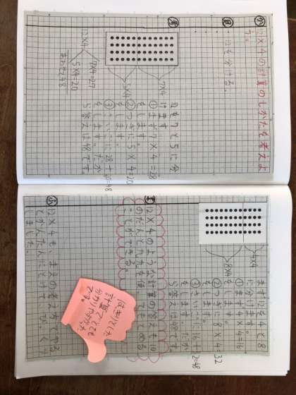 九九を見なおそうでは、しきのかける数やかけられる数を分けた計算の仕方を考えていますね。