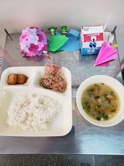 ゴーヤチャンプルー、すまし汁、あつあげのしょうがじょうゆかけ