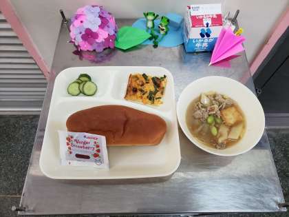 豚肉と野菜の煮もの、チヂミ、きゅうりの甘酢あえ
