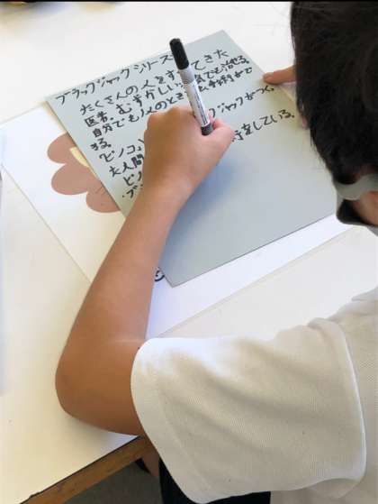 図書委員のおすすめの本やシリーズを選び、紹介ポスターを作りました。完成したら図書室前に掲示しますので、ぜひ見てくださいね。