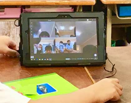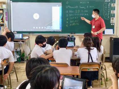 ICT活用の授業の一環として、MS社「Teams」の会議ソフトを活用した、実習を行いました。本日は、子どもたちを交えた接続練習の1回目として、「Teams」の起動のしかた、サインインの方法、授業用パソコンからタブレットへの動画配信のテストを行いました。