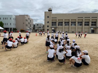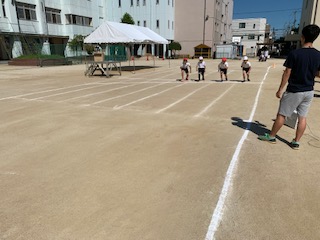 今年は「台風の目」と「100メートル走」にチャレンジします。台風の目はみんなで力を合わせて、100メートル走は一周という長い距離を力いっぱい頑張ります。
