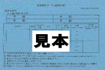 2.先日配布の健康観察カード(運動会用)〔下の写真〕に必要事項を記入の上、必ずお持ちください。