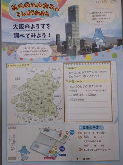 当日は展望台から東西南北それぞれからは何が見えるか、どんなところかを資料に書き込みながら見学します。