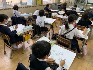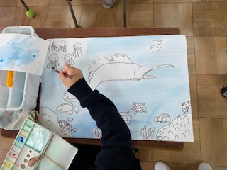 赤、青、黄の三原色と白を使って色を塗っていきます。