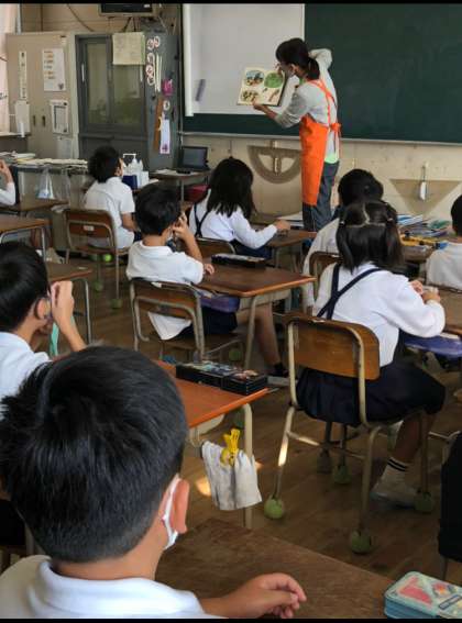 今朝の読書タイムから、図書ボランティア「おはなし隊」の方々による、絵本の読み聞かせがスタートしました。