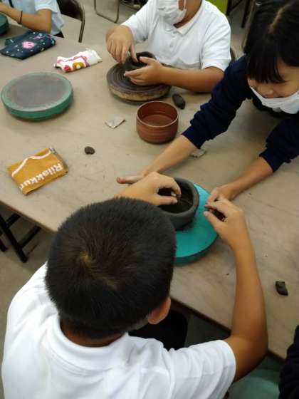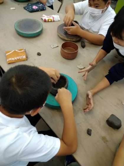 ろくろを回すときに、協力する姿が見られています!!素晴らしいです!!