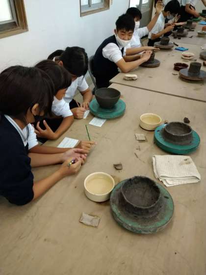 校長先生職人に確認してもらっています!!校長先生の作品に夢中です!!