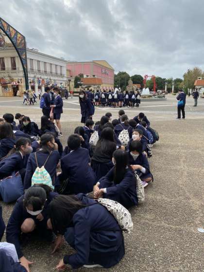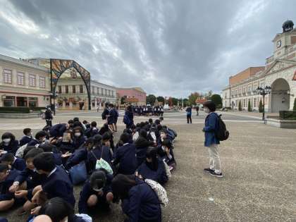 スペイン村に入場しました。学級写真を撮った後、班活動です。ワクワク。