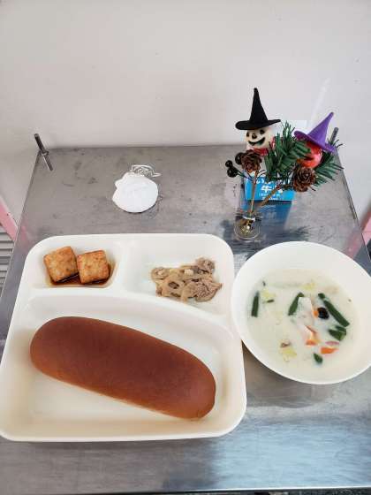 はくさいのクリーム煮、あつあげのピリ辛じょうゆかけ、豚肉とれんこんのオイスターソースいため