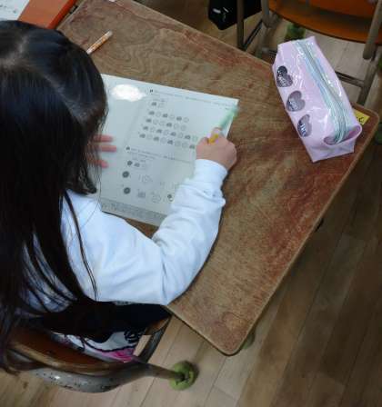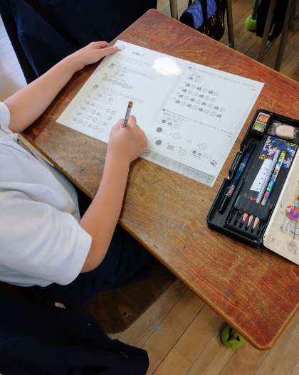 総合の時間では練習プリントを使いながら、プログラミング的思考についての学習を行っています。