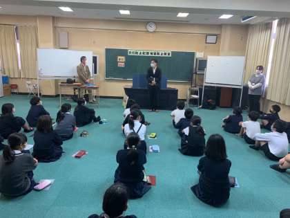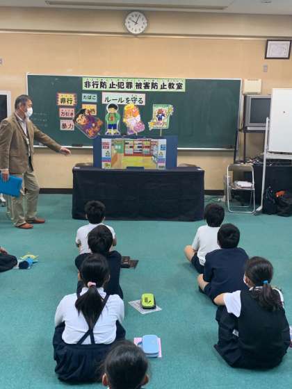 万引きをすると犯罪になるということ、関わった人も罪になるということ、タバコ・酒は二十歳から、など【ルールを守る】【断る勇気】【思いやりの気持ちをもつ】という大切な3つを教えていただきました。