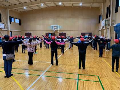 朝のつどいを体育館で、行っています。