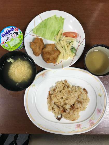 最後のご飯は、炊き込みご飯と唐揚げ。美味しそう!!