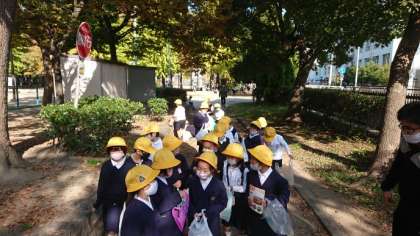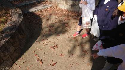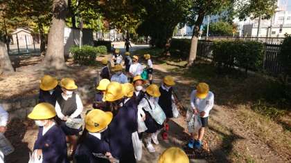 秋も深まり、子供達は学校を出て、近くの今川公園へ「秋さがし」に行きました。