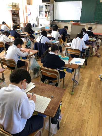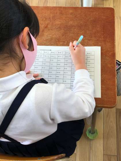 2年生は、たし算・ひき算混合の計算プリントに挑戦しています。
