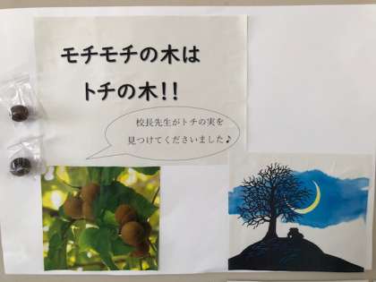 校長先生が自然体験学習の宿舎付近でとちの木を見つけ、落ちていた実をお土産にくださいました。