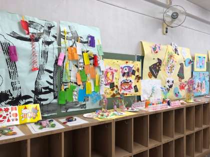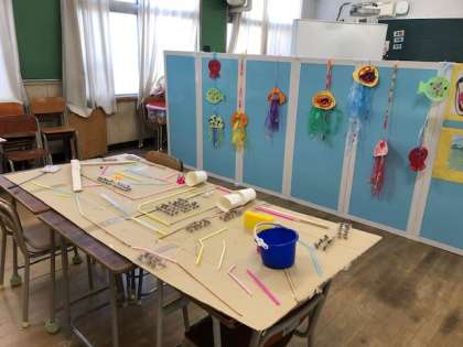 支援学級在籍の子ども達何人かで共同制作した作品も、期間中に展示しました。