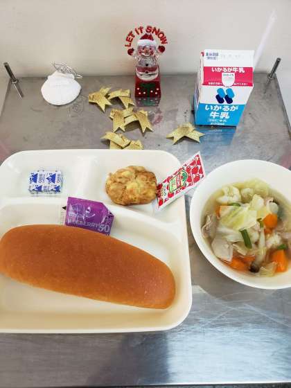 とうふハンバーグ、カリフラワーにスープ煮、固形チーズ、ブルーベリージャム