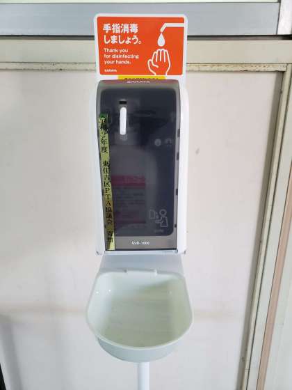 東住吉区PTA協議会より、手指消毒用マルチスタンドが寄付されました。