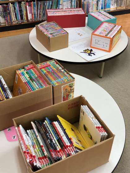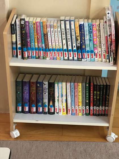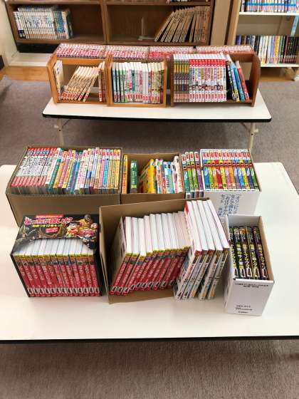 今は、図書室の奥にある机にまとめて並べています。図書室に来たときは、ぜひ読んでくださいね!