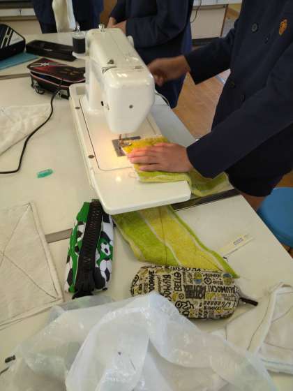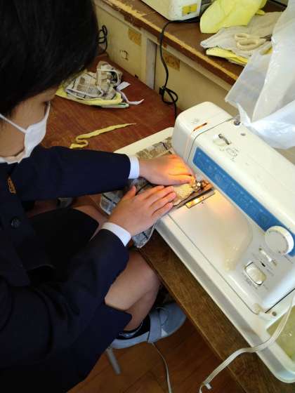 卒業生として恥ずかしくない、そして感謝の気持ちをこめたぞうきんを作っています。みんなよく集中してミシンを進めています。