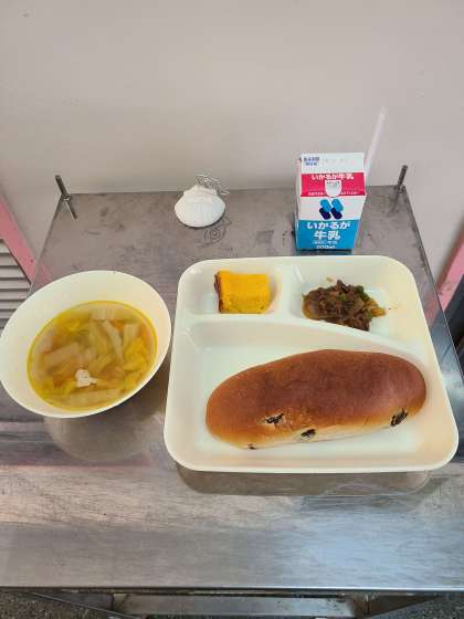 牛肉のデミグラスソース煮 コーンとはくさいのスープ かぼちゃのプリン