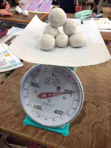 ものの形を変えたときの重さについて、はかりを用いて測定しました。