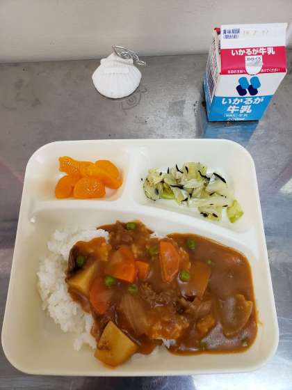ハヤシライス、キャベツのひじきドレッシング、みかん(缶)