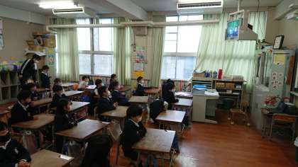 6年生が卒業をすることで、1年生からは、代表の児童がメッセージ、1年生のみんなで「世界中の子どもたち」を手話で、動画にしてプレゼントをしました。