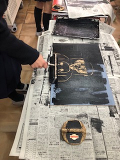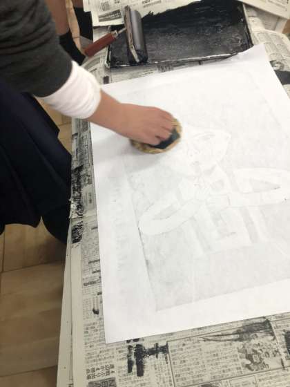 インクをつけて、紙に写しとると、わぁと歓声が上がり、出来栄えに満足そうでした。