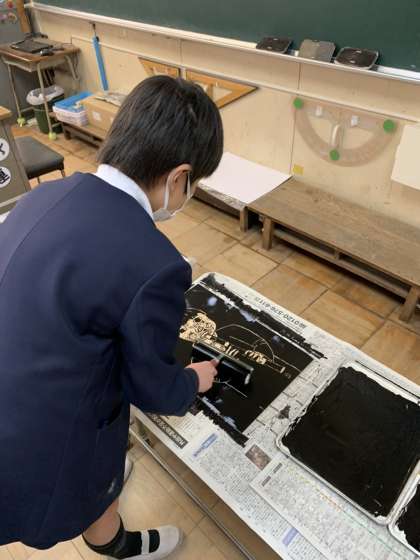 初めての木版画でしたが、彫刻刀の使い方もじょうずになり、出来上がりを想像しながら彫ることが出来ました。