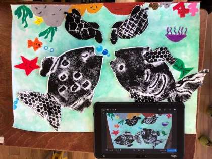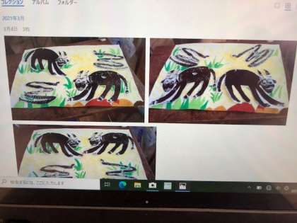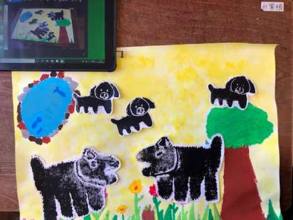 背景が仕上がったら、どう並べるか構成を考えます。タブレットで撮影して、どの並べ方が一番いいか考え、貼り、完成です。