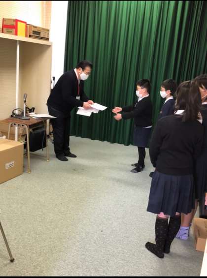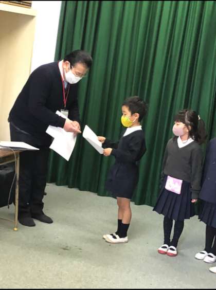 今日の朝会で、各学級で1年間の読書量が1位の児童に、校長先生より表彰がありました。全員で23名の児童が表彰されました。