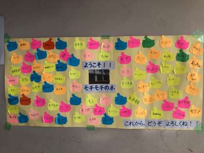 2学期に引き続き、校長先生クイズにみんな大喜び。「これからどうぞよろしくね。」の気持ちを込めて、それぞれが木にニックネームをつけました。