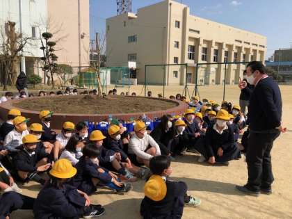 この度ご縁があり、国語科で学習したトチの木(モチモチの木のモデルとされる木)が、学校の円形花壇にやってきました。