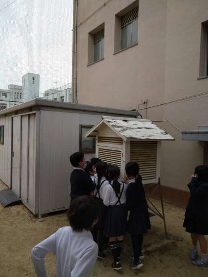 温度計を使うときに注意することや、学校にある百葉箱の場所を確認しました。