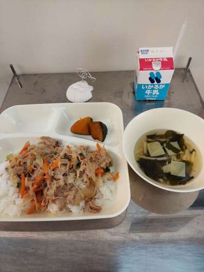豚丼、湯葉のすまし汁、かぼちゃのしょうゆ焼き