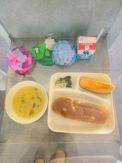 かぼちゃのクリームシチュー ミックス海そうのサラダ クインシーメロン